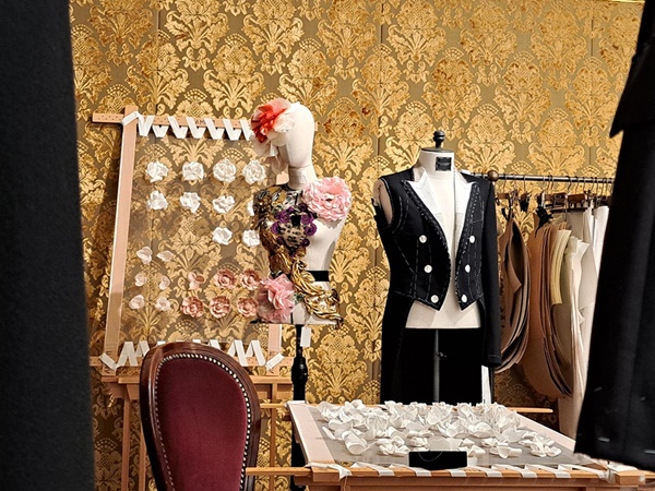 Stepping into the exhibition, I was immediately transported into a universe of pure magic. Curated by Florence Müller, the exhibition retraces the creative process that brings Dolce&Gabbana’s extraordinary creations to life, starting from the heart – their passion and talent – and reaching the hands that craft each piece with artisanal mastery.