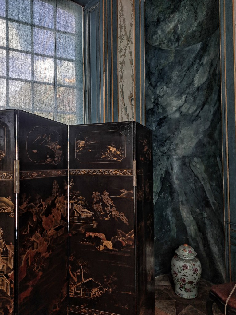 This is one of my absolute favourite rooms! It gives me a sense of peace and tranquility with its green colour, its aesthetic, its Chinese silk wallpapers 🙂