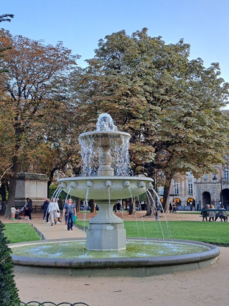 The square is enclosed by 36 identical red brick buildings, each with elegant details. The central garden, adorned with linden trees, fountains and an equestrian statue of King Louis VIII (son of king Henry IV), provides a tranquil oasis.